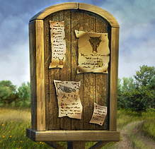 С сегодняшнего дня вы можете получать задания от жителей мира не только поговорив с ними лично, но и прочитав их записки на Досках объявлений. Пока такая доска в Харадане одна, найти её можно в Полях неподалеку от Бранендаля. У сельчан, оставляющих на ней свои записки, много забот: разбойники не дают прохода и отбирают последнее, хищные чудовища угрожают сорвать посевную, а налетевшие с Эмилиного болота духи пугают детей. Со всеми этими проблемами могбы справиться бесстрашный воин, которого призывает явиться на помощь каждая прибитая к доске записка.